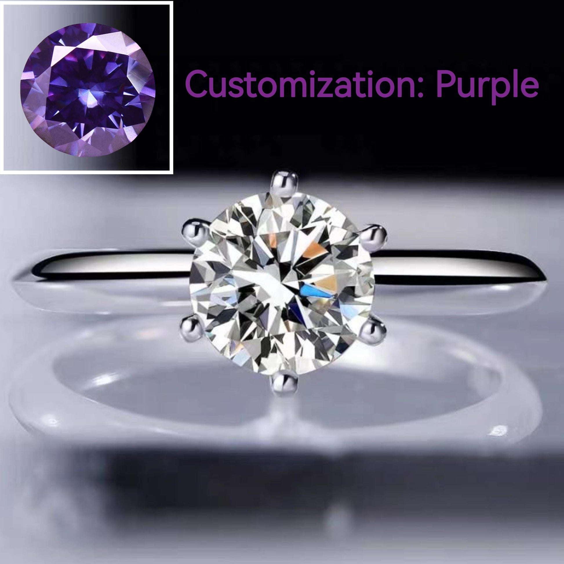 Purple-S925 Sterling Silver D Color Synthetic Moissanite Six-claws Ring 1/2/3/5 Carat-235(35%)
