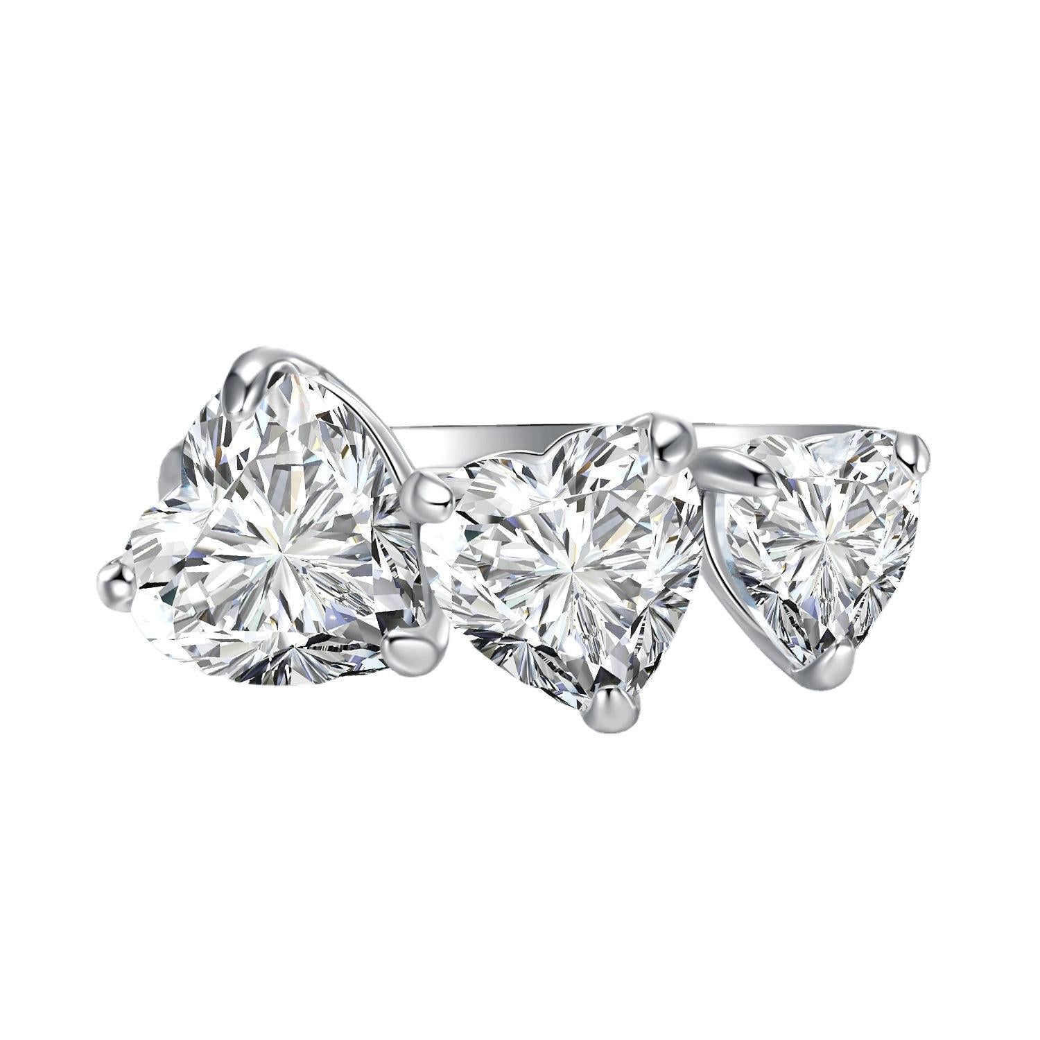 S925 sterling silver heart cut three-heart ring 6A cubic zirconia ring fashion jewelry accessory woman Girl promise ring-226(35%)