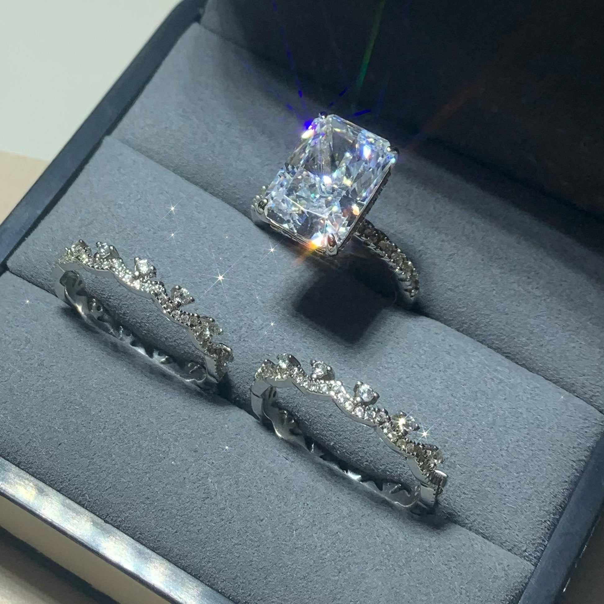 S925 Sterling Silver Ice Flower cut rectangular ring 9*13mm 8A cubic zirconia ring fashion jewelry accessory woman girl promise ring-155(35%)