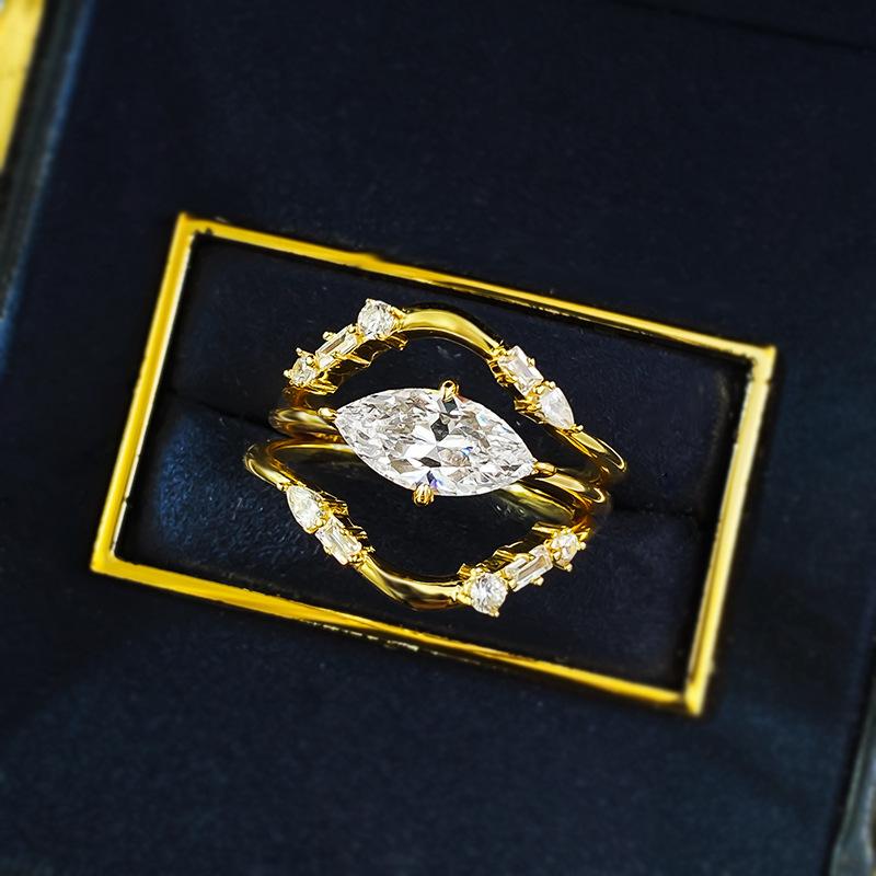 S925 Sterling Silver Marquise Ring 6*12mm 6A Cubic Zirconia Ring Three-piece ring set fashion jewelry accessory woman girl promise ring Springtok-358(35%)