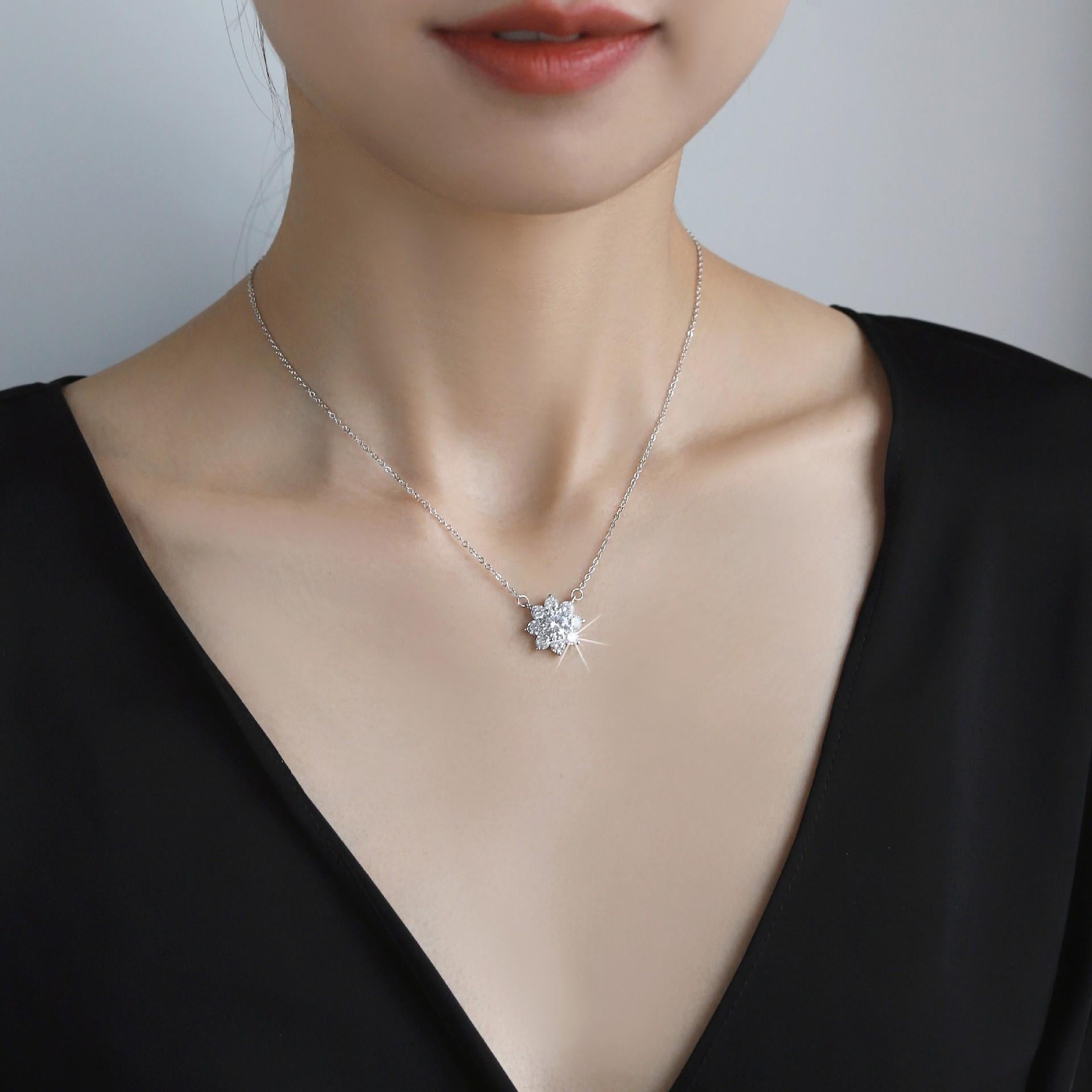 S925 Sterling Silver SUNFLOWER Necklace Synthetic Moissanite Birthday Gift Minimalist Pendant Necklace-325(35%)