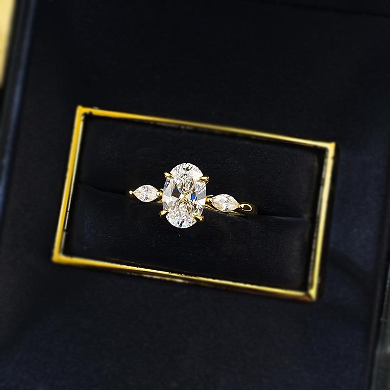 S925 Sterling Silver Tiny Oval Three Stone Ring 6*9mm 6A Cubic Zirconia Ring-146(45%)