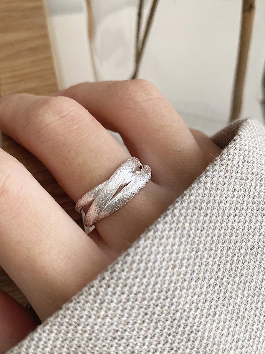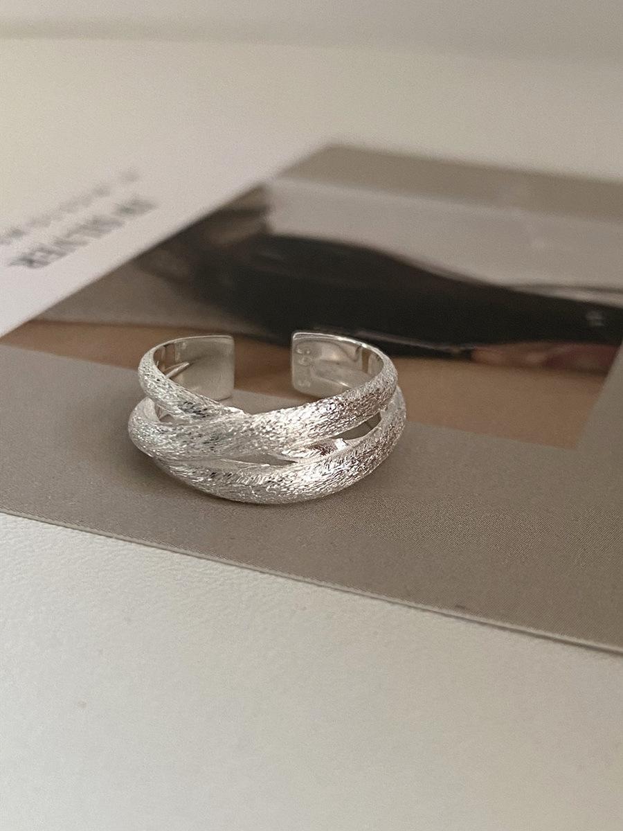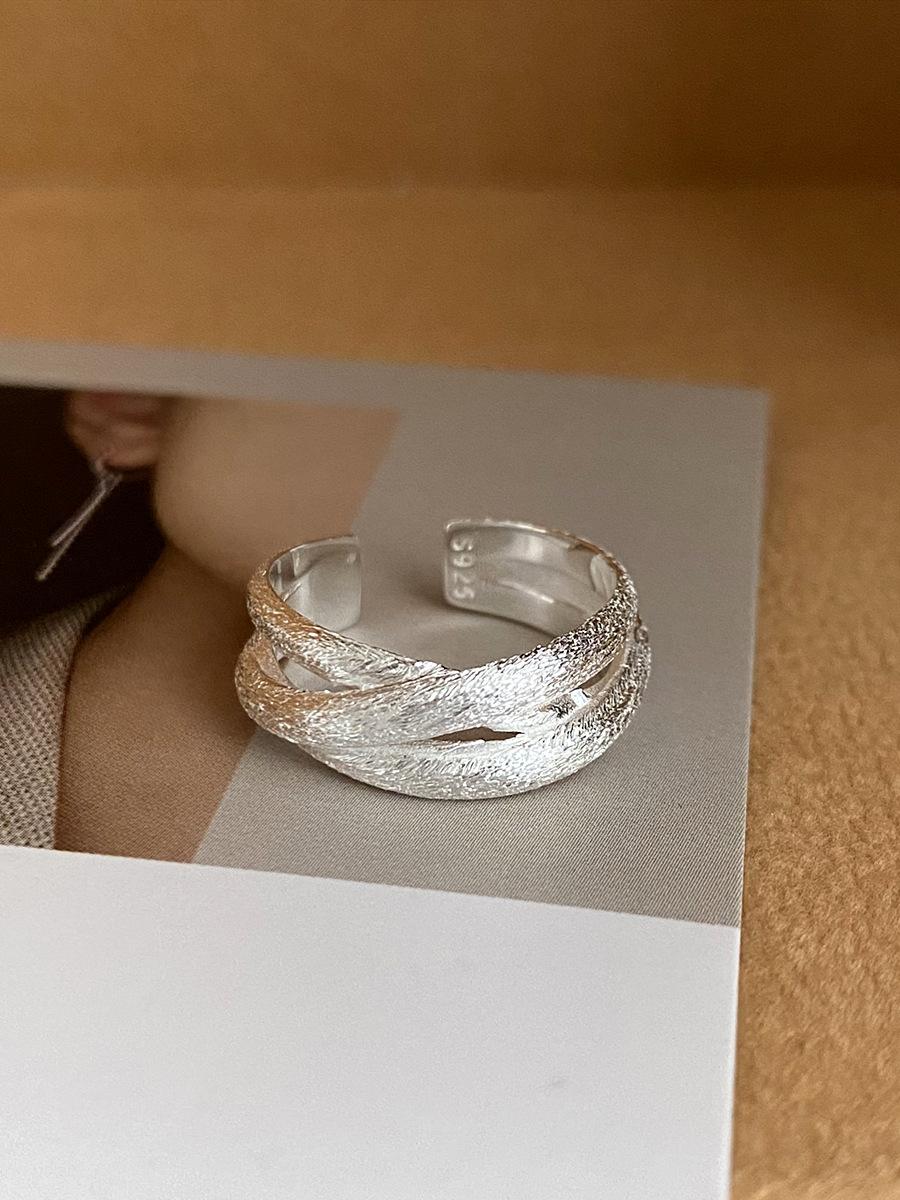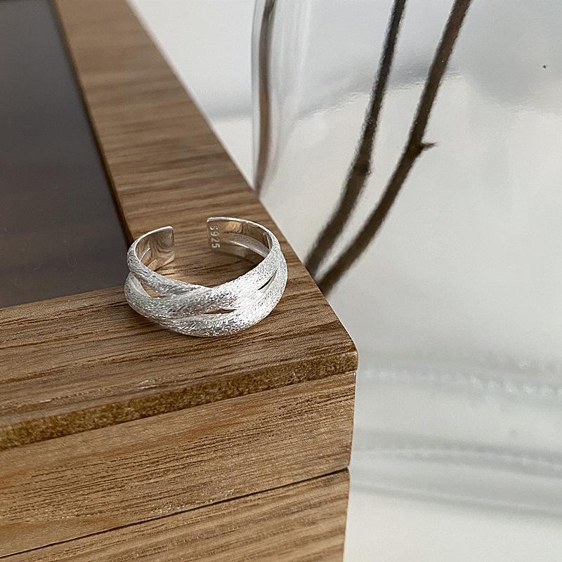 S925 Sterling Silver Multi-layer Cross Brushed Ring for Women Open Ring -553(45%)