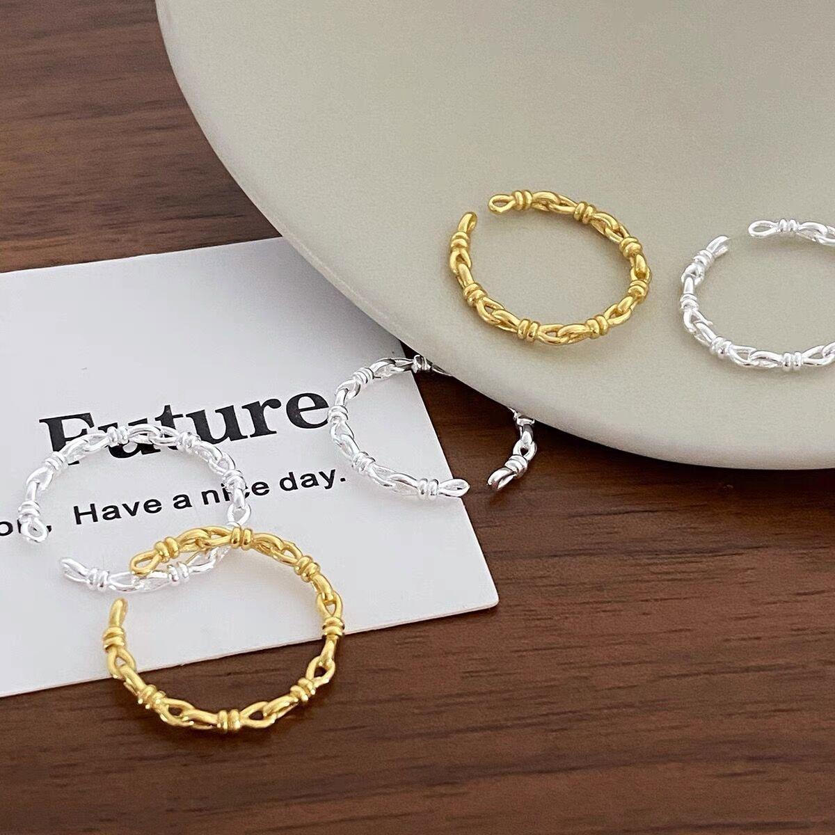 S925 Sterling Silver Threaded Knotted Braided Ring for Women Open -550(45%)