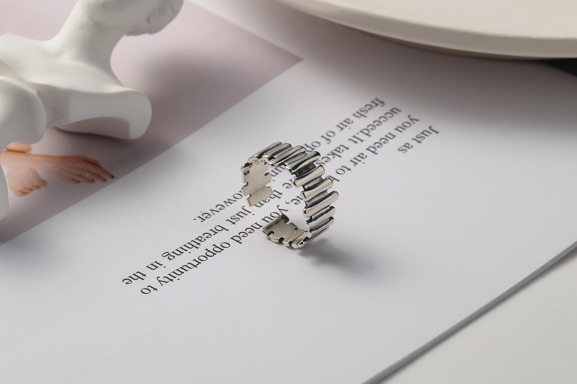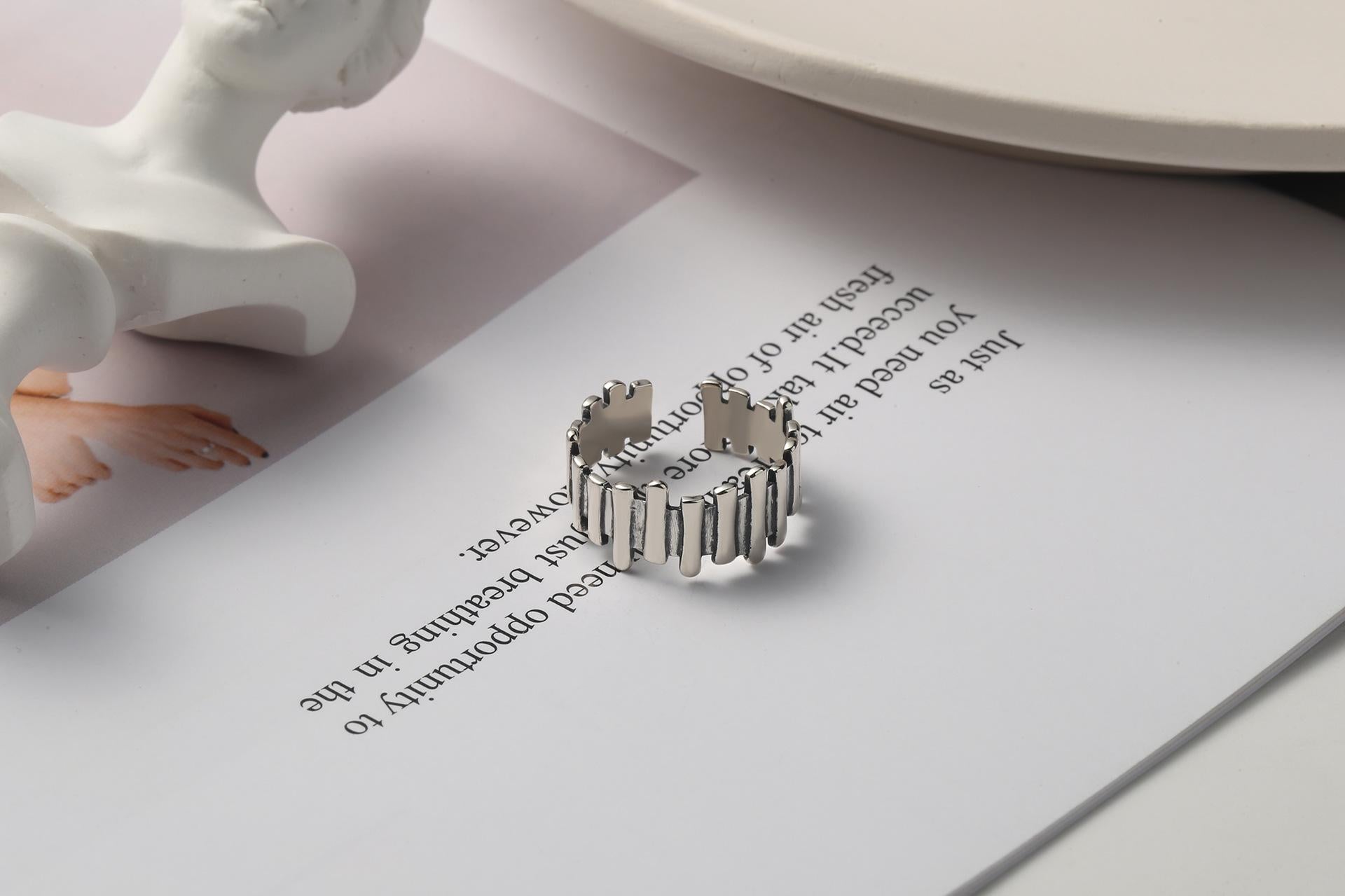 S925 Sterling Silver Vintage Irregular Solid Row Ring for Women - 536(45%)